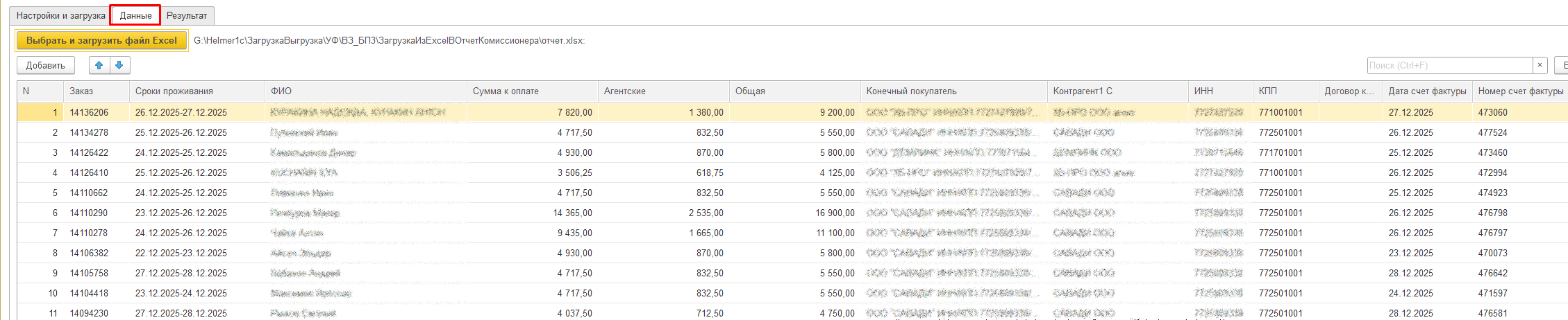 | БП3 обработка загрузки данных из Excel в отчет комиссионера | - | 2 500.00 |