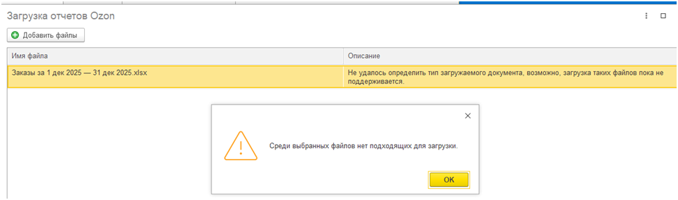 Пробуем загружать его через механизм загрузки с Озона и получаем ошибку
