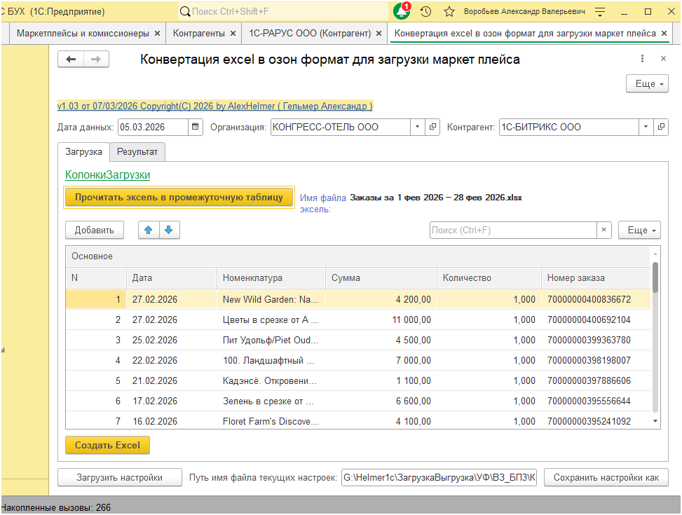 | КонвертацияExcelВОзонФорматДляЗагрузкиМаркетПлейса.epf | - | 1 500.00 |