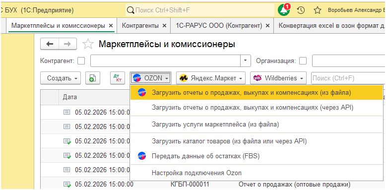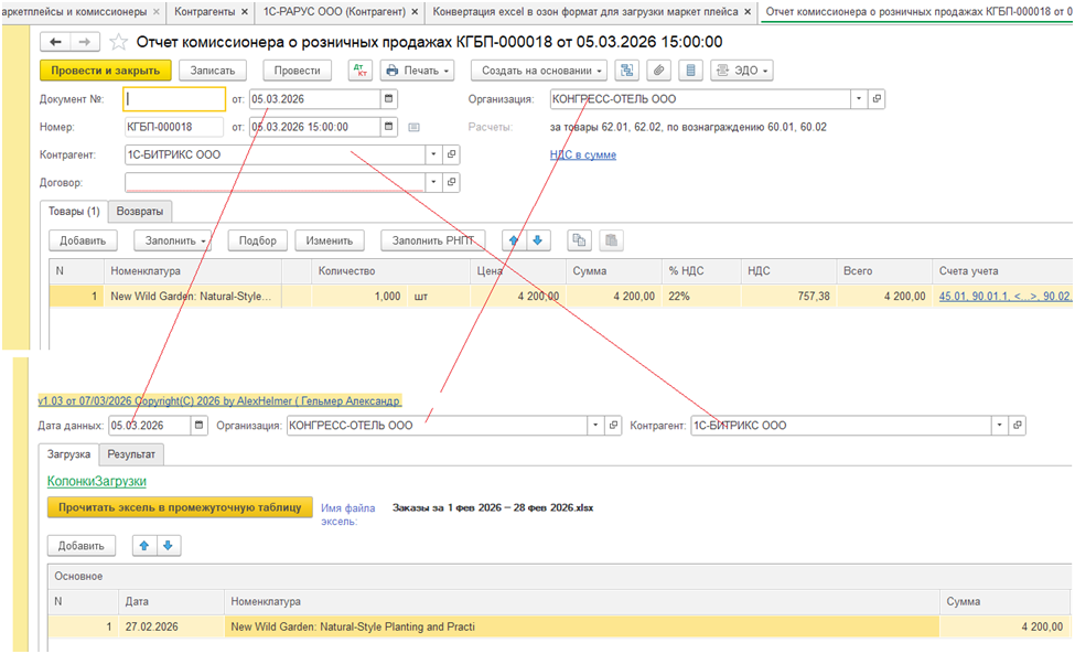 Обработка для преобразования файла Excel в другой файл Excel в формате для загрузки в документ Отчет комиссионера через штатный механизм работы 1с бухгалтерии с маркетплейсами