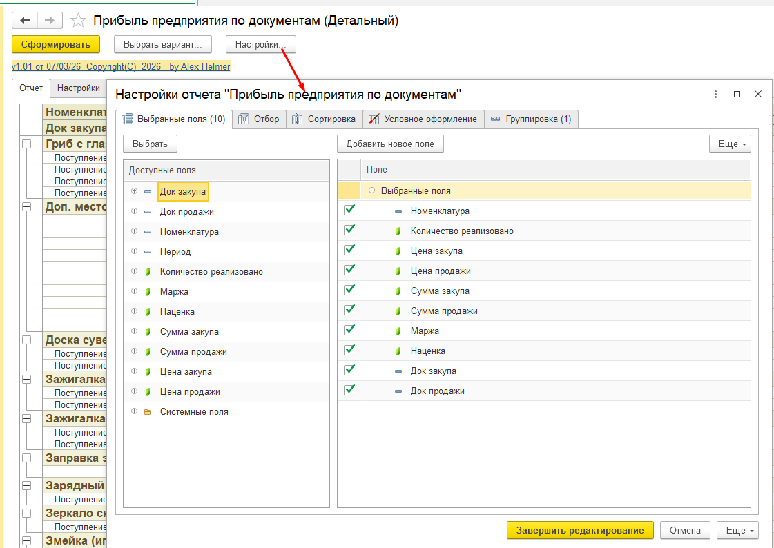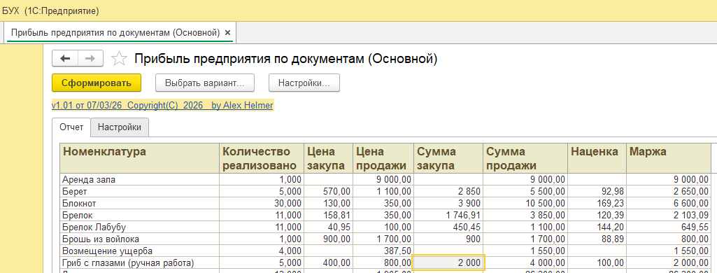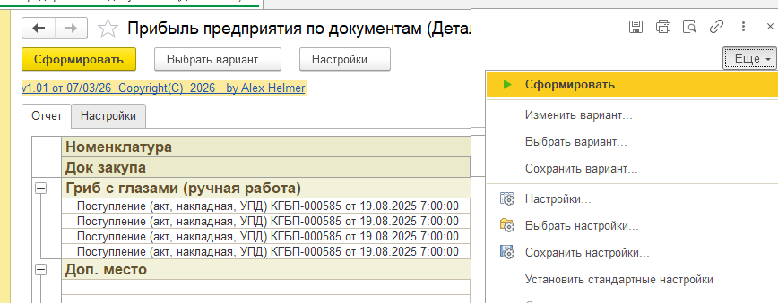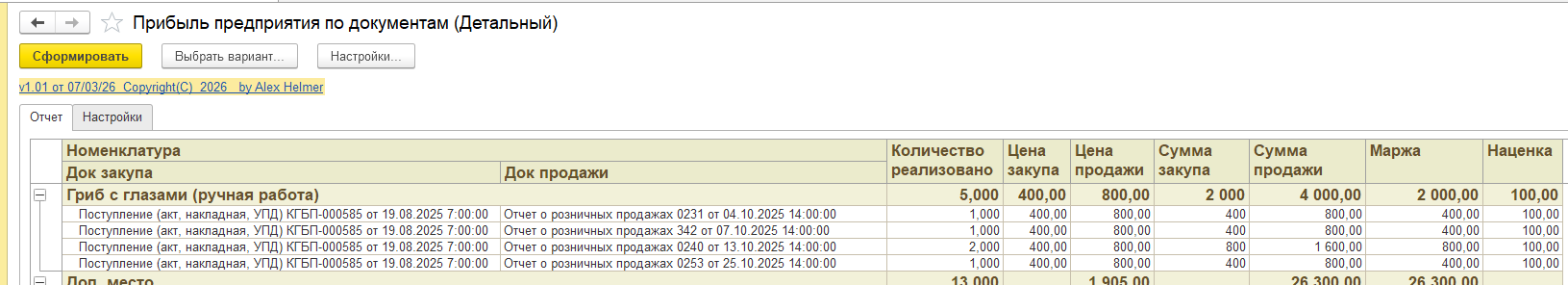 вариант отчета "Детальный" покажет из каких первичных документов были извлечены стоимостные показатели