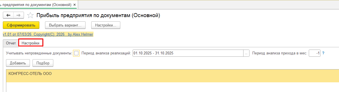Отчет формируется по документам продажи за указанный период и по выбранной организации за указанный период